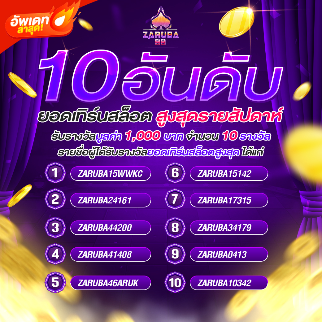 ประกาศ 10 อันดับยอดเทิร์นสล็อตสูงสุดรายสัปดาห์